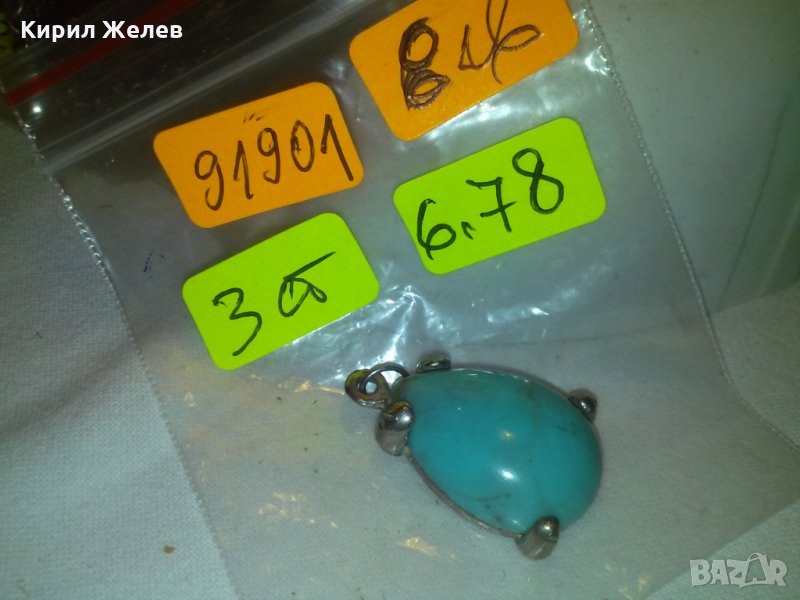 СТАР ТЮРКОАЗЕН МЕДАЛЬОН ВИСУЛКА ПЕНДАНТ с ПОСРЕБРЕН ОБКОВ 91901