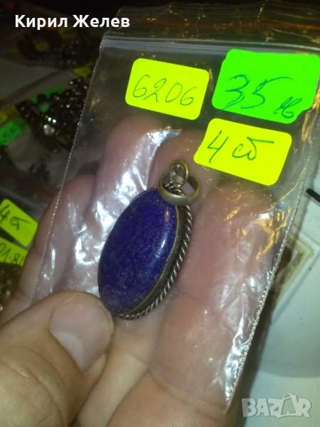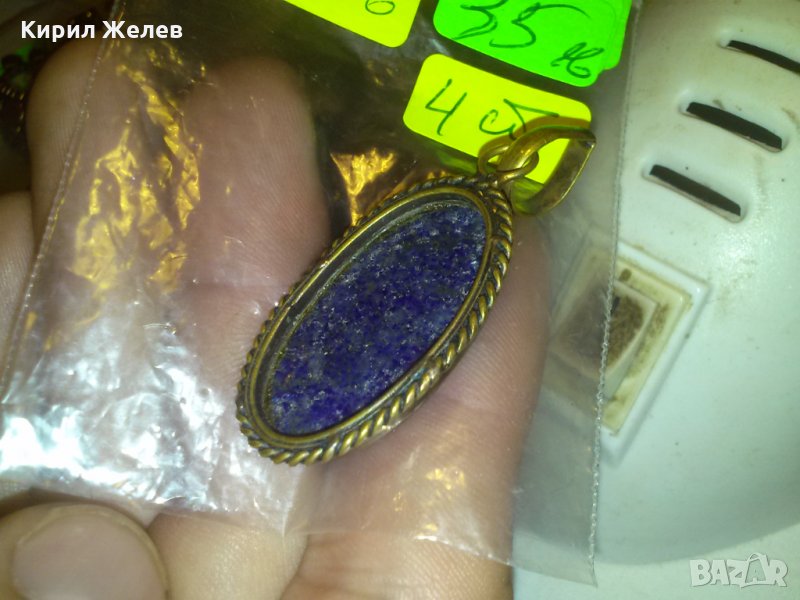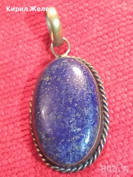 ЛАПИС ЛАЗУЛИ СКЪПОЦЕНЕН КАМЪК с БРОНЗОВ ОБКОВ СТАРО БИЖУ ПЕНДАНТ МЕДАЛЬОН 6206