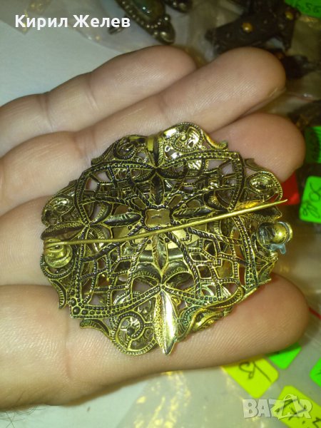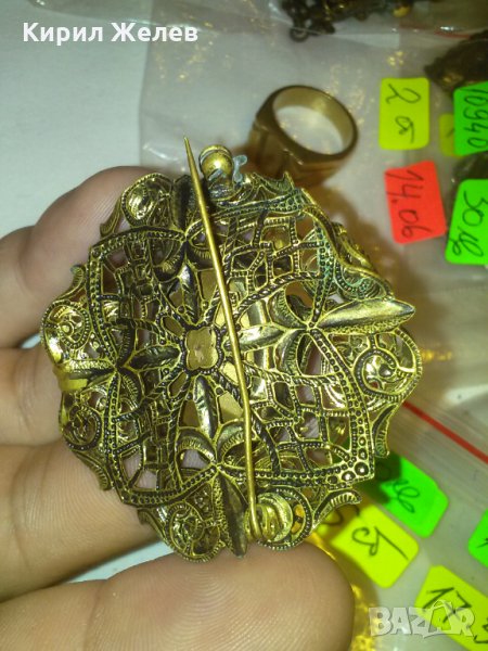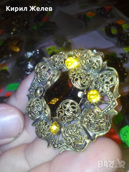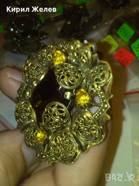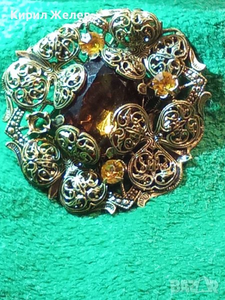 ФИЛИГРАННА 20-те ГОДИНИ БРОШКА с ЦИТРИН КАМЪНИ БРОНЗОВА 10830