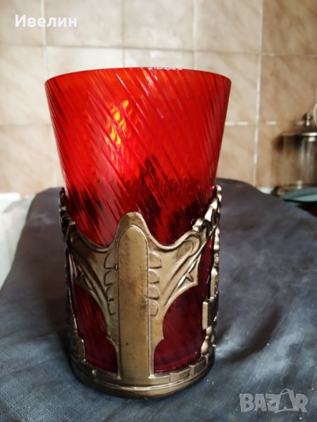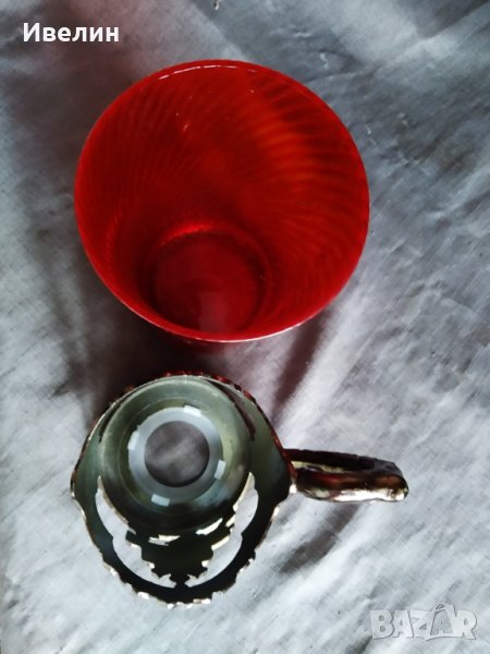 ретро чаша,халба.червено стъкло с височина 16см,отвор 9см в метален обков.