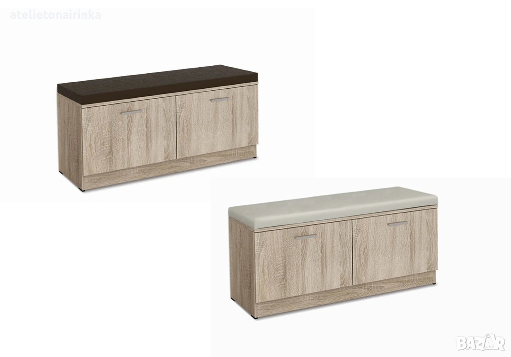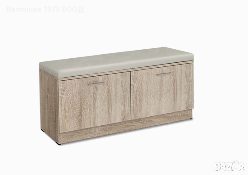 Шкаф- табуретка с две вратички и един рафт. Събира между 8 и 12 чифта обувки.