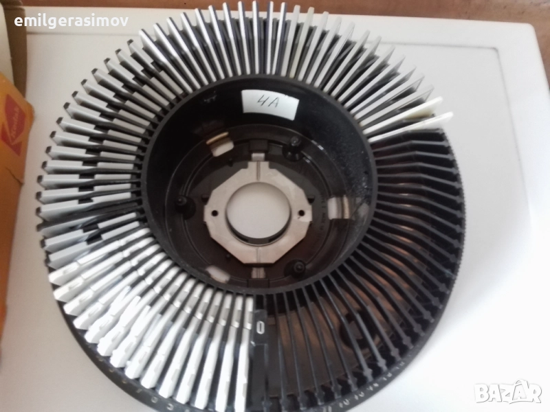 1. Въртящ се ринг с диапозитиви за диаскоп. Побира 80 диапозитива. В негоима 56 броя. Здрав в отлично състояние. Изпробван. Диаметър 23 см. Цена 13 евро.