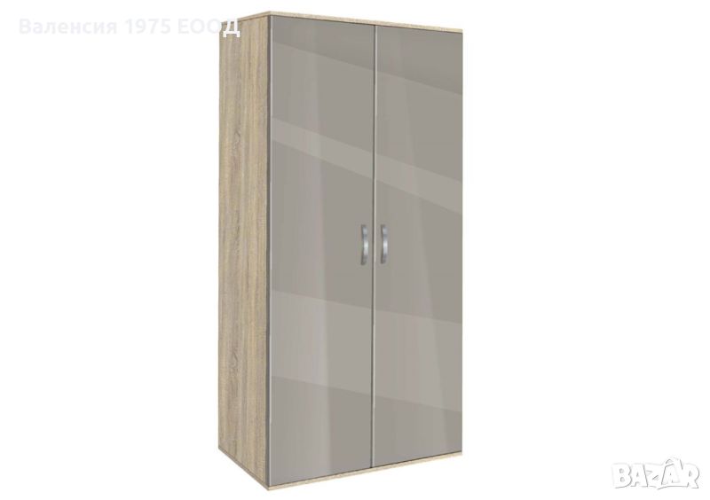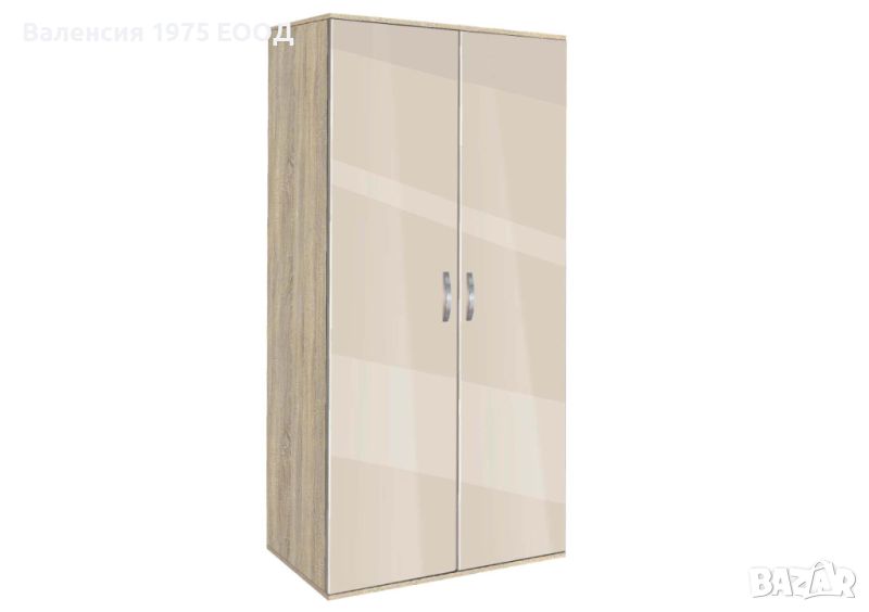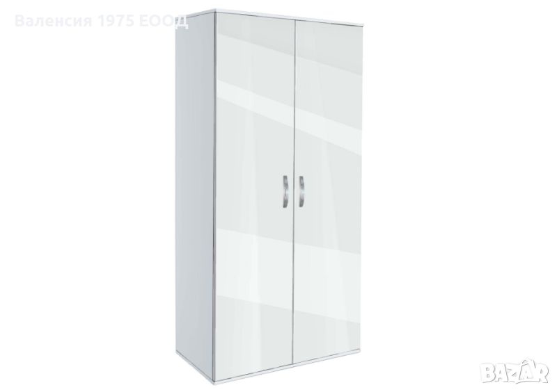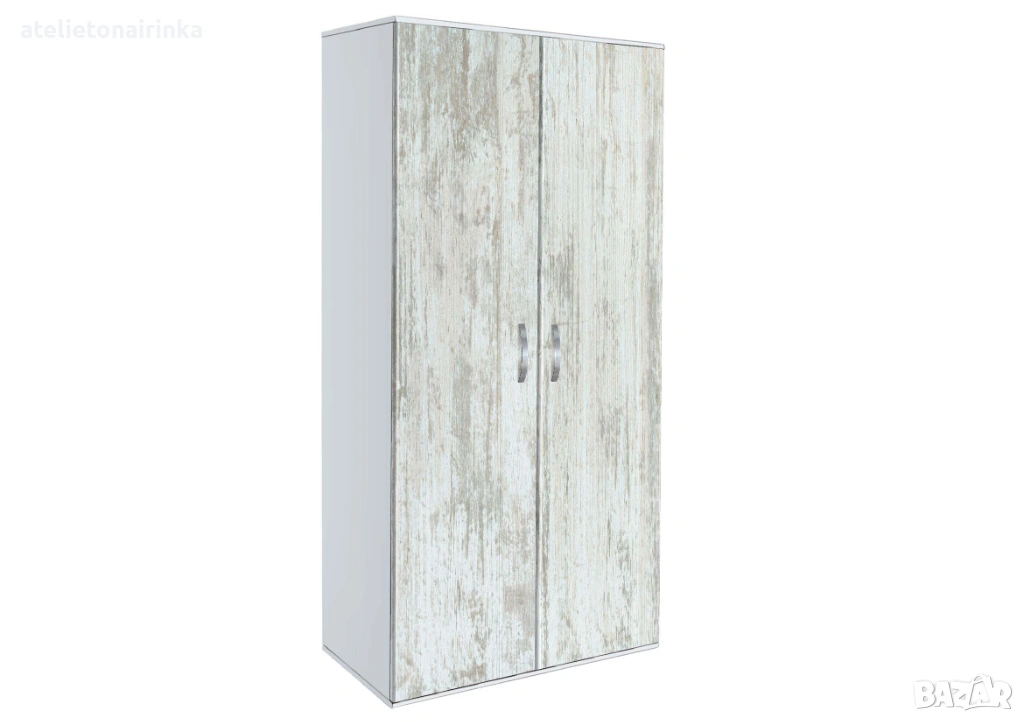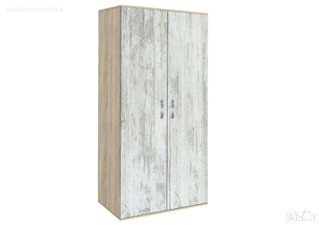 Двукрил гардероб с четири рафта и лост за закачалки.