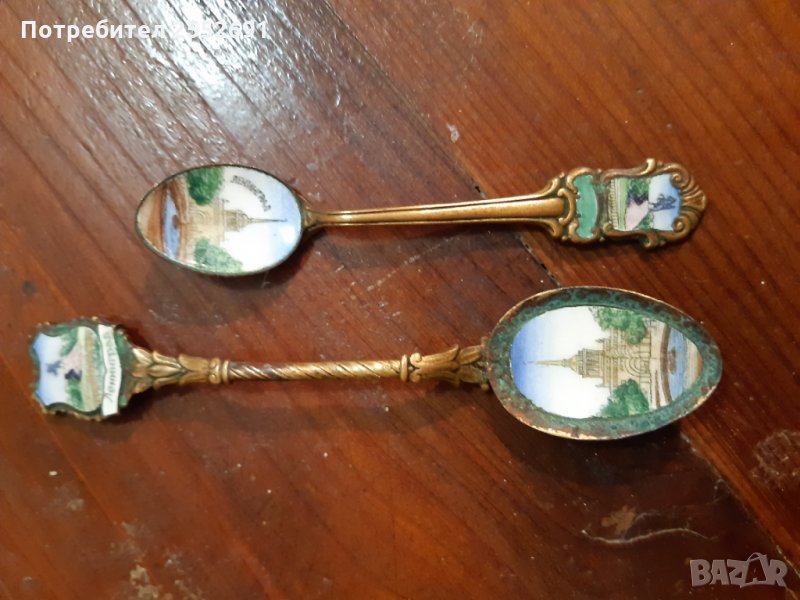 Два броя руски бронзови сувенирни лъжички "ЛЕНИНГРАД " с емаил. Дължина-13см и 10см.