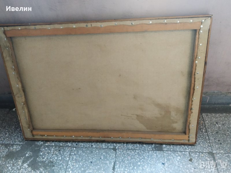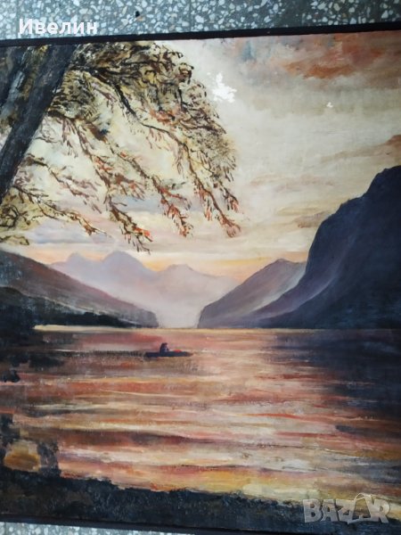картина-пейзаж масло на платно на подрамка в дървена рамка с размери 63см/93см.има нужда от почистване и рестварация-посочено е.