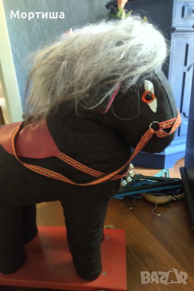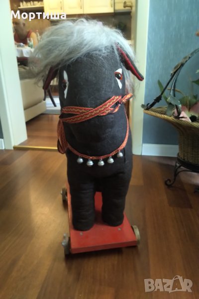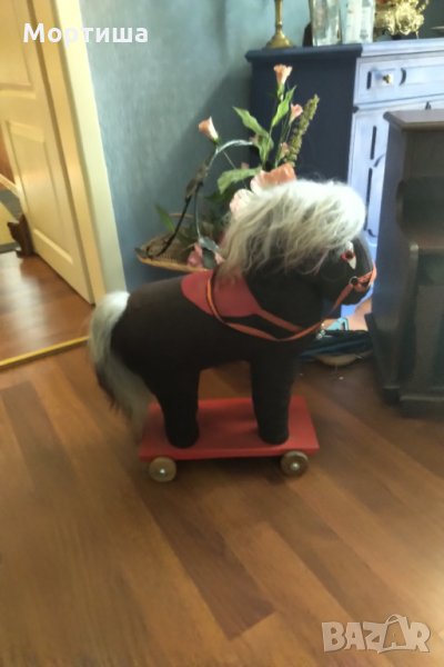 Самото конче е високо 59 см дълго 57 см тялото е от дърво и много дебел пълнеж .