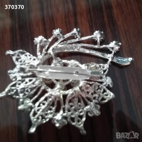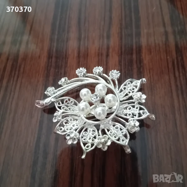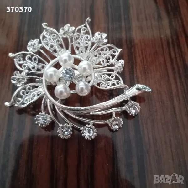 брошка с безцветни кристали и бели перли - цена 3 евро