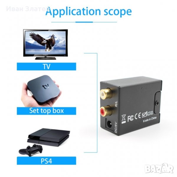 Конвертира цифров (Коаксиален или Toslink) звук в аналогов (RCA R/L - чинчове) звук