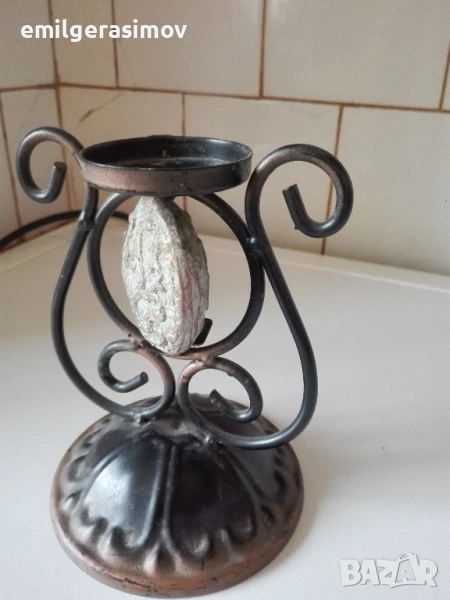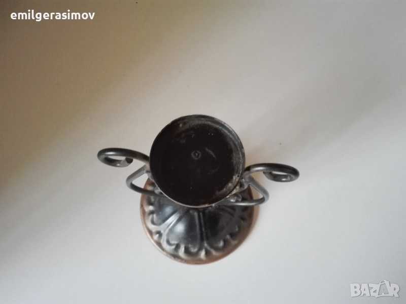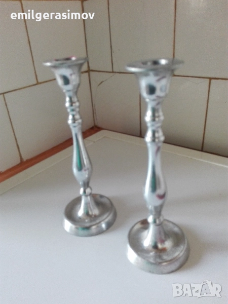 3. Два свещника от цветен метал в отлично състояние. Височина 20 см. Свещите не са включени в цената. Те са само за