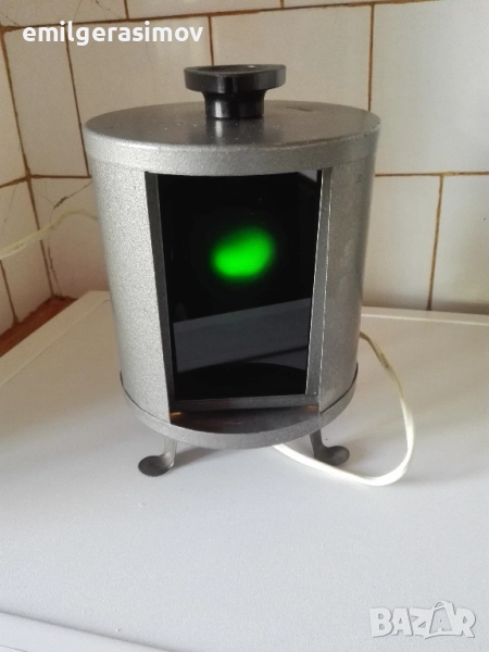 зелен и прозрачен. Има три цветни стъкла , които се завъртат с