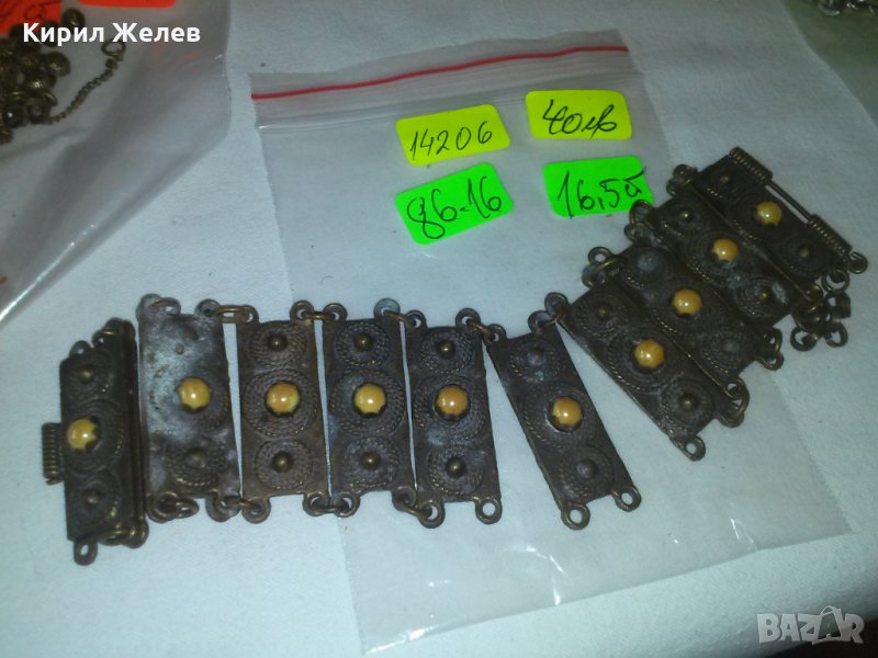 Пускам ТЕМАТИЧНА СЕРИЯ от МНОГО стари, включително възрожденски, османски и др., и нови най-вече метални / бронзови, медни и др., позлатени и посребрени, има и масивно сребро някои от тях - бижута, кръстчета, пръстени, броеници, брошки, камеи, гривни, огърлици, колиета, медальони, висулки, обеци, украшения, колани и др. подобни - повечето са стари и ръчно изработени и богато икрустирани предимно с естествени материали - скъпоценни и полу - скъпоценни камъни, включително 100% натурален, както и топен / прахов КЕХЛИБАР, фатуран, каталин, стар оригинален колекционерски бакелит и др. подобни смоли. Подходящи са за колекция, подарък, носене, включително за народни носии и възстановки, както и някои от тях и като материал за АРТ - хенд-мейд изделия. Снимките ги онагледяват! При конкретен интерес - ПИШЕТЕ или звънете по тел.!