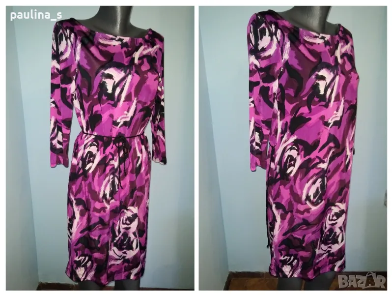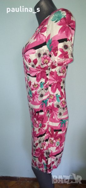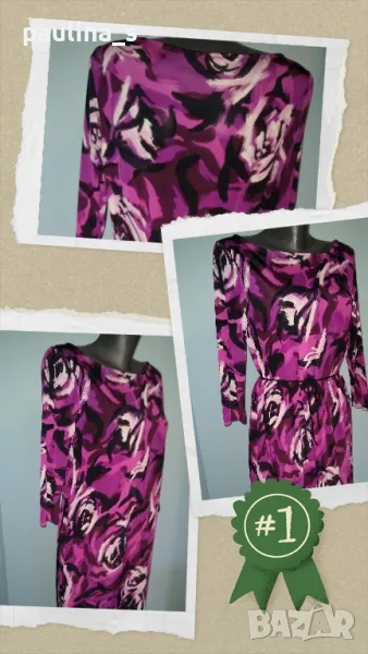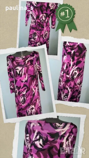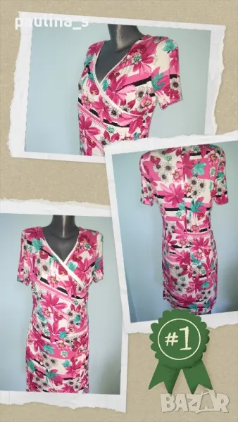 1️⃣ . Колаж / M / 2XL - "Gerry Weber". Цената е крайна 29,99лв / 15 евро. Много красива рокля във флорален принт с прекръстосано гръцко деколте. Роклята е с хастар, има еластичност и покрива няколко размера, закопчава се с цип отзад. Горната част е от вискозна коприна - трико, изключително приятна за носене материя. Хастарът е стегнат и има оформящ ефект. Не е нова, но е без дефекти.