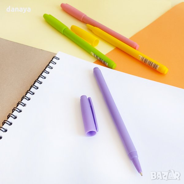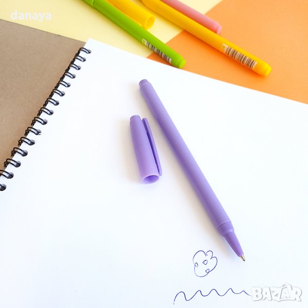 Син химикал за писане с капачка. Гладко и лесно писане.Цветно тяло в зелен, лилав, розов или жълт цвят. Дебелина на писеца: 1.00mm