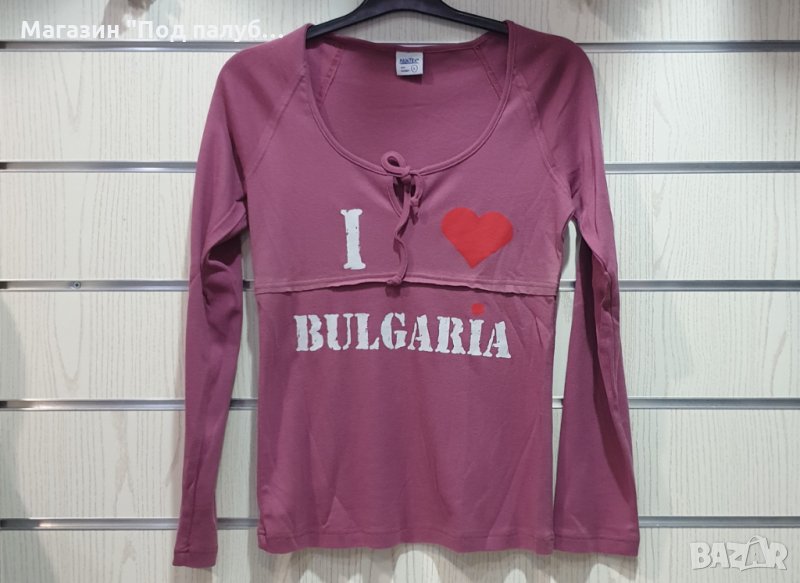 Нова дамска блуза с дълъг ръкав и трансферен печат I Love Bulgaria (Аз Обичам България)