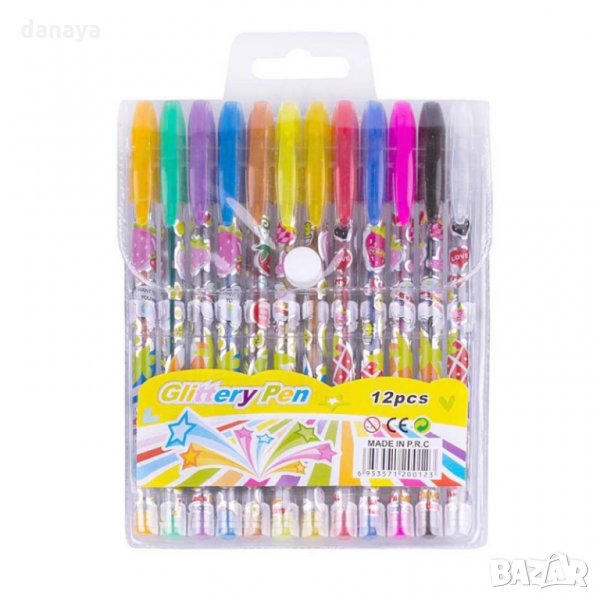 1567 Цветни гел химикали с брокат, 12 броя в комплект → Обява 29608841