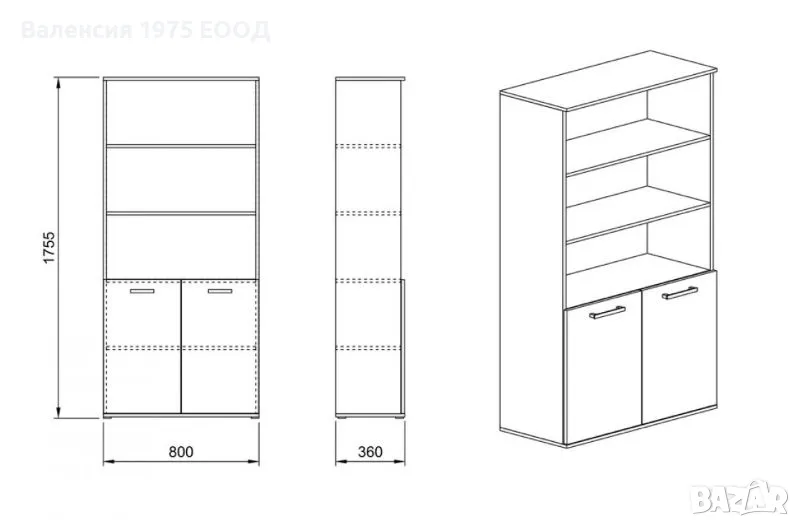 Етажерка с три ниши, две вратички и рафт.