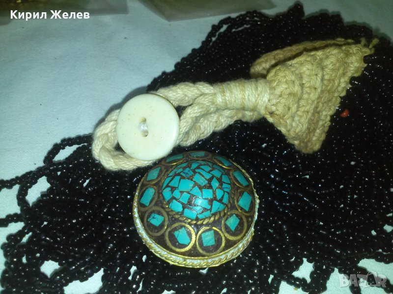 МНОГО СТАРА, 100% АВТЕНТИЧЕН ВИД, РЪЧНА ПЛЕТКА на КУКА с ЕСТЕСТВЕНА ВЪЛНА в 2-та КРАЯ. МЕДАЛЬОНЪТ в СРЕДАТА е ЮВЕЛИРНО ПРОИЗВЕДЕНИЕ на ТРАДИЦИОННОТО БИЖУТЕРИЙНО АФРИКАНСКО ИЗКУСТВО, с МНОГО РЪЧНО ИНКРУСТИРАНИ НАТУРАЛНИ КЪСЧЕТА ТЮРКОАЗ. Пускам ТЕМАТИЧНА СЕРИЯ от МНОГО стари, включително възрожденски, османски и др., и нови най-вече метални / бронзови, медни и др., позлатени и посребрени, има и масивно сребро някои от тях - бижута, кръстчета, пръстени, броеници, брошки, камеи, гривни, огърлици, колиета, медальони, висулки, обеци, украшения, колани и др. подобни - повечето са стари и ръчно изработени и богато икрустирани предимно с естествени материали - скъпоценни и полу - скъпоценни камъни, включително 100% натурален, както и топен / прахов КЕХЛИБАР, фатуран, каталин, стар оригинален колекционерски бакелит и др. подобни смоли. Подходящи са за колекция, подарък, носене, включително за народни носии и възстановки, както и някои от тях и като материал за АРТ - хенд-мейд изделия. Снимките ги онагледяват! При конкретен интерес - ПИШЕТЕ или звънете по тел.!