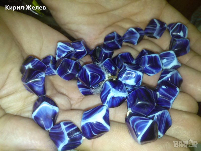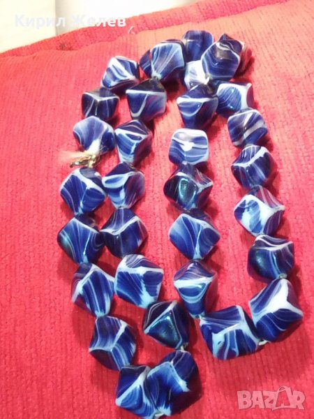 СТАРО АРТ ДЕКО 30-те ГОДИНИ КОЛИЕ МЛЕЧНО-СИН ПОЛУСКЪПОЦЕНЕН КАМЪК ЯСПИС 74511