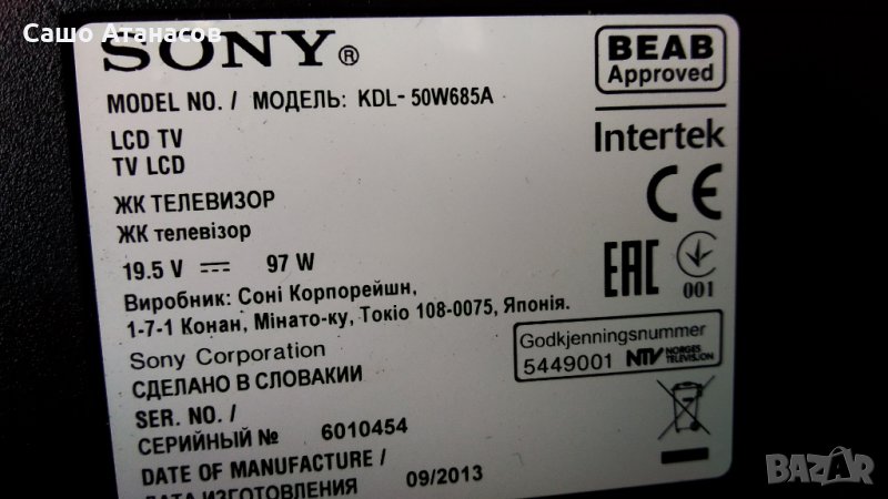 SONY KDL-50W685A с дефектна матрица ,1-888-390-11 ,T500HVN04.0 ,1-888-391-11 ,ST500AU-6S01 REV: 1.0