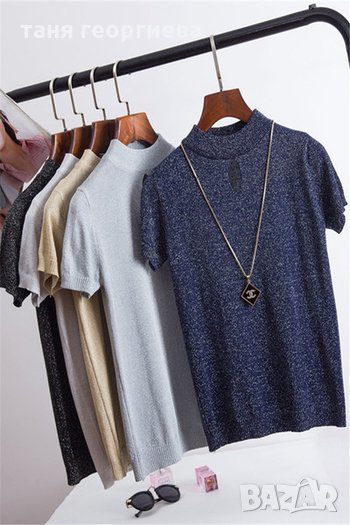 Модерна нова спортно-елегантна блузка с лъскава нишка и ефектно деколте Материята е много фино машинно плетиво