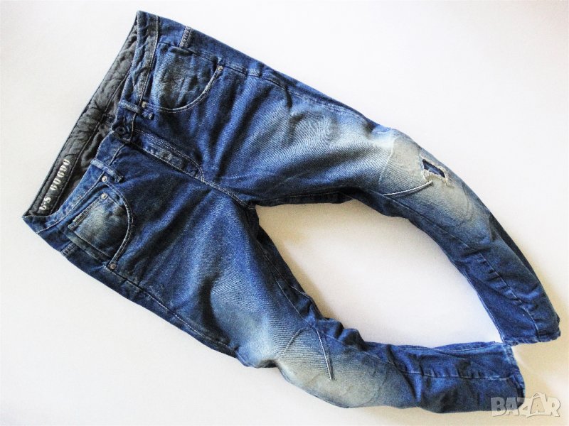 Нови, без етикет. Дизайнерска колекция на бранда G-Star Raw F/W 2012 година. Протъркани и състарени фабрично!!! Талия - 40см, ханш - 48см, дълбочина отпред - 26см, дълбочина отзад -3 6,5см, бедро до четал - 26см, коляно - 17,5см, подгъв - 15см, дължина отвън - 96см, дължина отвътре - 68см от 100% памук без еластичност.