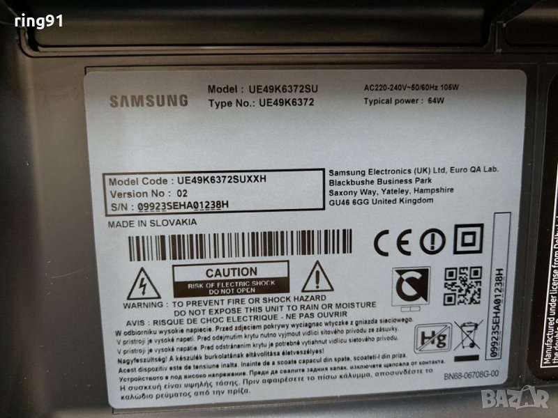 Захранване - BN44-00872C TV Samsung UE49K6372SU → Обява 29619234