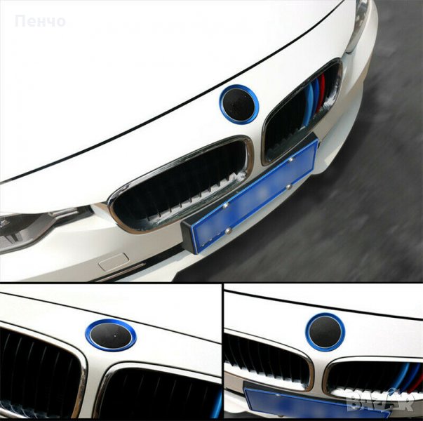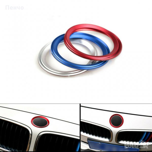 Алуминиев автомобилен цветен ринг пръстен за лого на преден заден капак син метален декор за BMW 3 4