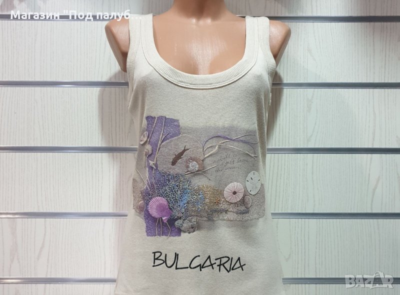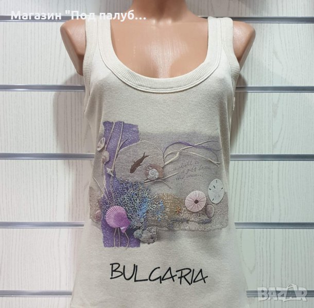 Страхотен нов дамски потник в кремав цвят с трансферен печат Мидички и надпис България, морски, U-образно деколте. Произведен в България под марката PRINTEX от висококачествен 100% памук. Леката и удобна материя е гарант за прохлада и комфорт в горещите летни дни, а вталена му кройка го прави подходящ както за спорт, така и за ежедневно носене с дънкови панталони. Потникът е с професионално изработен висококачествен трансферен печат, устойчив на пране с години и може да се пере при температура до 40 градуса. Спокойно можем да гарантираме за качеството на изработката и ярките цветове на дизайна.