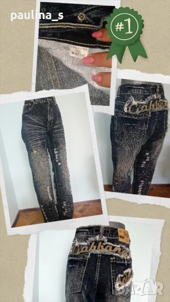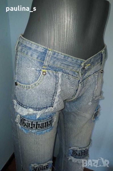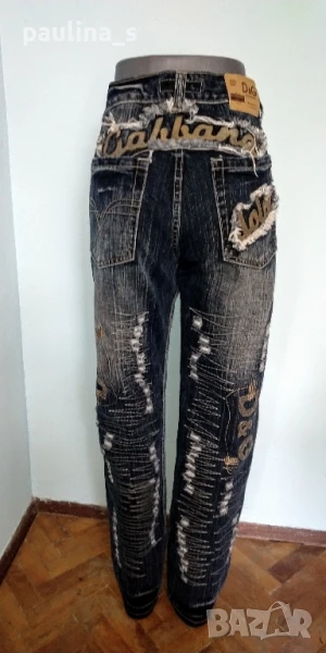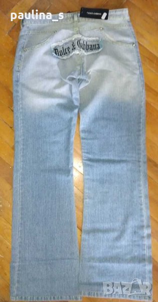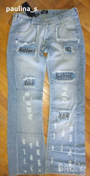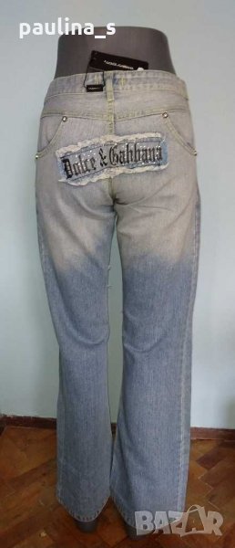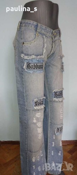 1️⃣ . Колаж / M / XL / 40EU - "Dolce & Gabbana". Цената е крайна 144,99лв / 74 евро. Изумително красиви дизайнерски дънки с богата декорация, характерна за бранда, ниска талия и широки крачоли. Копчетата и кабсите са с вградени циркони, декорациите са асиметрични - тип задната част отпред. Неповторим аутлук. Дънките са нови, една бройка! Вижте мерките в обявата, моля.