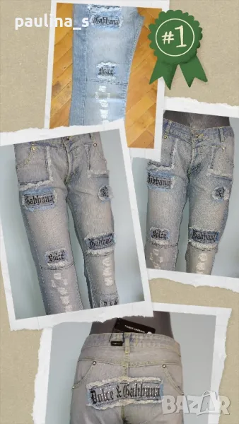 2️⃣ . Колаж / M / XL - "Dolce & Gabbana". Цената е 144,99лв / 74 евро. Дизайнерски дънки с нормална до ниска талия, широки крачоли и бродерия, накъсани! Дрехата е изумителна. Материята е памук без еластичност. Моделът е 5 pocket Denim standard с широки крачоли. Като нови са.