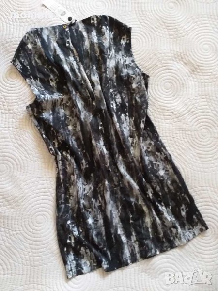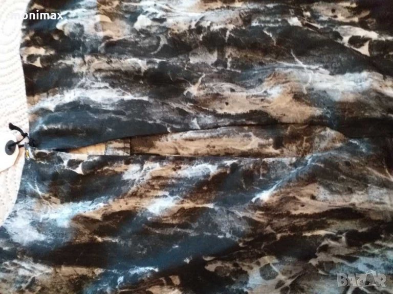 Къс сукман на Only по етикет XS , но става спокойно за S , дори М . Прав модел от много лека материя с два странични джоба . Не се мачка , може да се носи с или без клин . На врата се закопчава с копче с голяма цепка , която дискретно разкрива гърба .