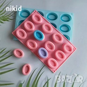 12 елипси овал с вдлъбнатина силиконов молд форма за сладки гипс шоколад → Обява 29639394