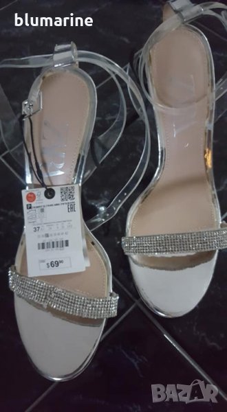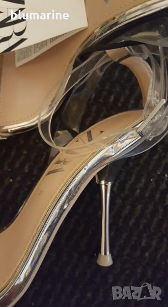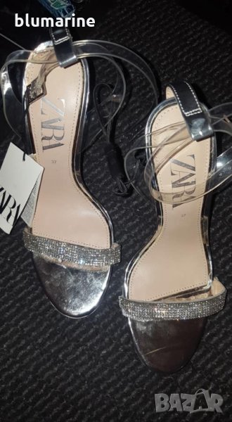 Дамски сандали ZARA, с камъчета и силиконови каишки около глезена. Тока е лъскав в сребро. Внос от Англия. Височина на тока - 11 см.