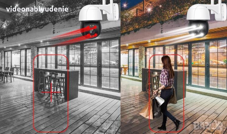 Водонепромокаема ULTRA HD 5MP PTZ 4хZoom WiFi Следяща Камера Микрофон Карта Слот PIR Сензор Движение