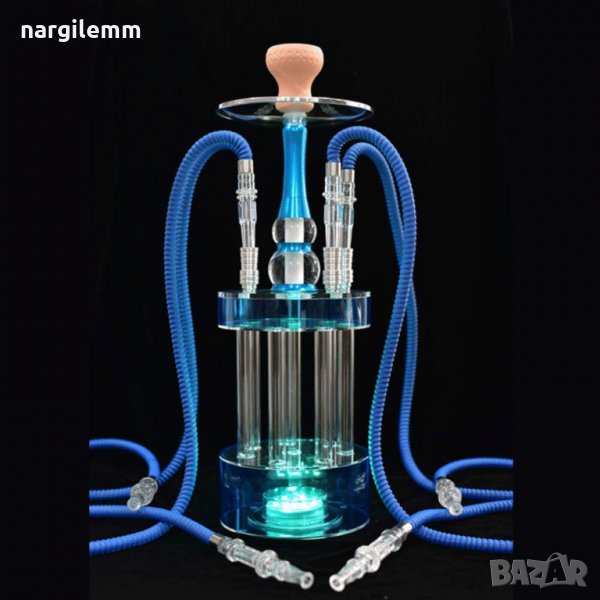 Наргиле Фонтан - е висококачествена изработка от перциглас с четири изхода който може да се пушат с четири маркуча в комлекта е включена и специална лед светлина която има над 20 мода за регулиране с дитанционно светлината работи с 3 батерии модел ААА.