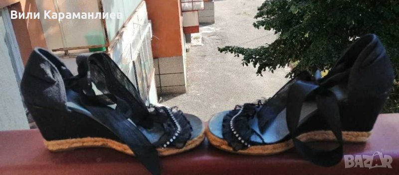 Испански сандали на платформа с ефектни камъни и тюл → Обява 29645749