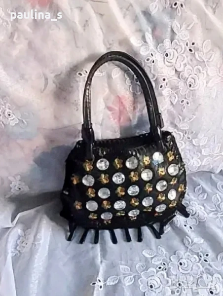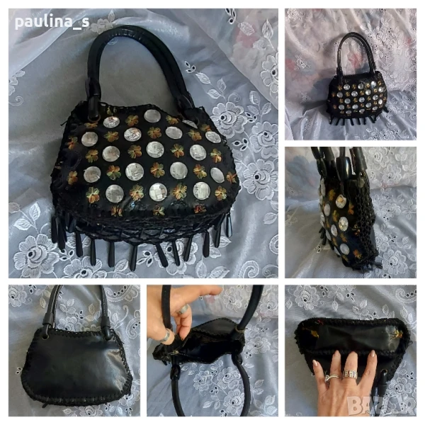 2️⃣. Колаж / Нова и Уникална чанта - бижу с бели камъни. Цената е 34,99лв / 17,5 евро. Чантата е изцяло ръчно изработена и декорирана отпред с бродерии и огромни бели камъни. В долната част и по кантовете е декорирана с ръчно изплетена дантела на една кука и висящи черни камъни. Подходяща за вечерно събитие, към официален тоалет. Побира два смартфона! Има едно отделение, закопчава се цип, ако не ползвате три телефона, може да си поставите и пудриерите! Безупречна. Размери: ширина 24см/ дълбочина 16см / дъно 7см / дръжки 36см. Моля, разгледайте и другите обяви и последвайте профила. Приятно разглеждане. Може да създадете пакет и да използвате доставката, тогава ще направя отстъпка от общата цена. При единична поръчка, цената не се коментира по никакъв начин, продажбата е с благотворителна цел! За лечение! Благодаря за вниманието и отделеното време 🙂