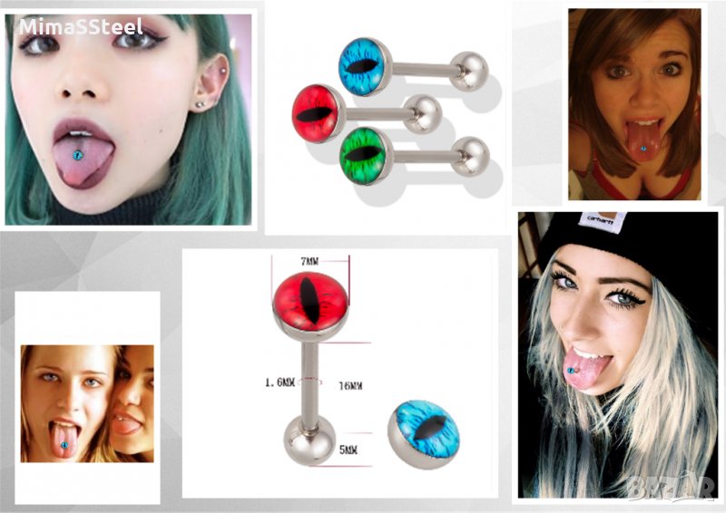 Пиърсинг обица за език Pterodactyl eye → Обява 29654978