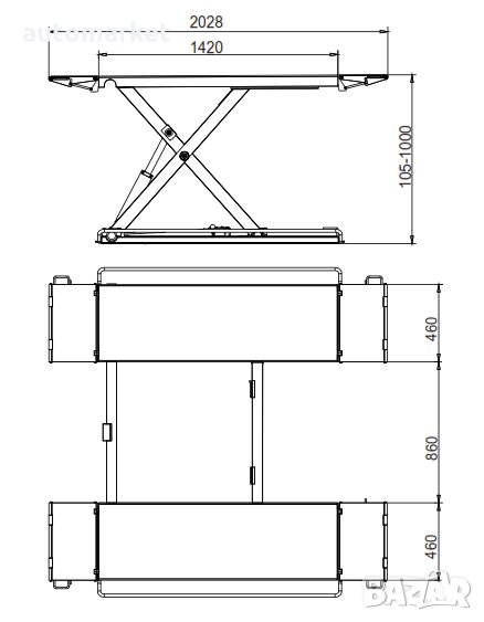 Товароподемност: 3000 кг. Подемниците са чисто нови! Конструкция от 18мм висококачествена стомана (на петите). Гарантирано най-добрата цена за нов такъв подемник в страната! Директен вносител на подемници от Европа. Ние сме единиственият вносител в страната, който предлага пълна гаранция от 24 месеца и реакция за сервиз и монтаж до 24 часа. Извънгаранционен сервиз на достъпни цени. Винаги налични подемници и части на склад! . Продават се в България повече от 30 години! Над 60 000 продадени и работещи подемника на територията на България, над 600 000 за цяла Европа. Изключително качество без компромис! Опция за изгоден лизинг. Ако намерите по-добра цена от тази в България, ще ви направим такава с 10% по евтина от намерената от вас.