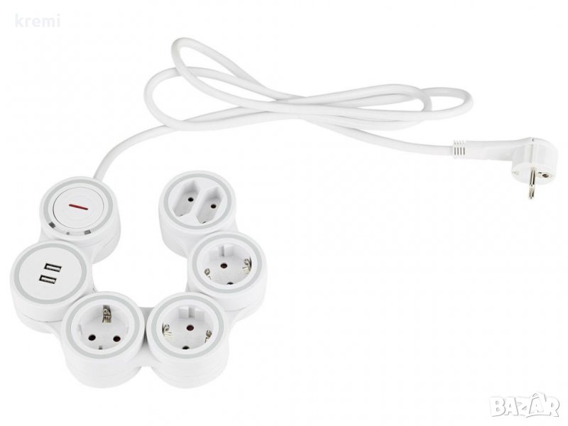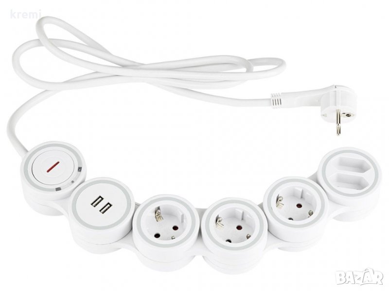 НОВИ! Разклонител 5 гнезда 2 USB-та Powerfix гъвкав 1.5м