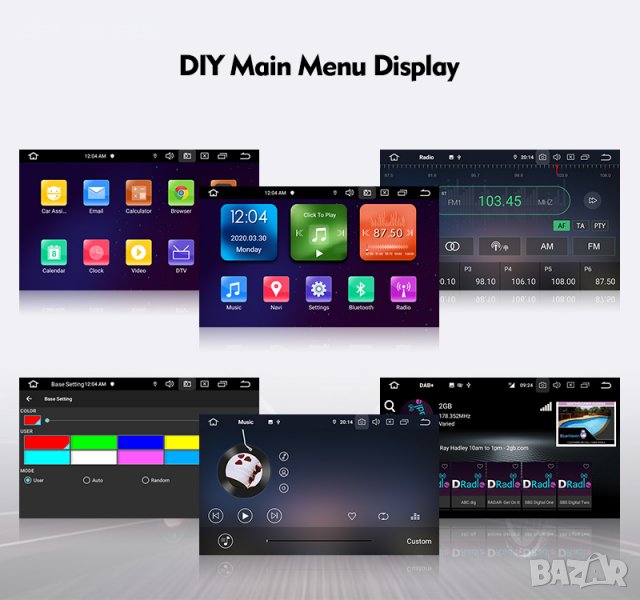 - дисплей с автоматично регулиране дневен/нощен режим в зависимост от интериорното осветление на автомобила и 1024/600 резолюция - HD капацитивен тъч