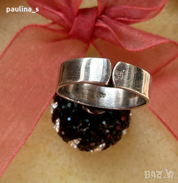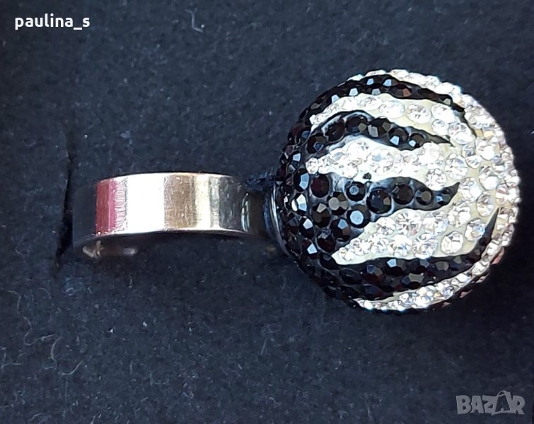 сребърен пръстен проба 925 с кристали Swarovski, Черно - Бял, с регулация. Цената е крайна 140,99лв / 70 евро. Топка в черно - бяло. Много масивен и ефектен. Камъните са безпогрешно различими, двойно маркиран за сребро и марка с Житен клас. Подходящ за подарък или повод. Размер 18мм вътрешен диаметър - минимален.