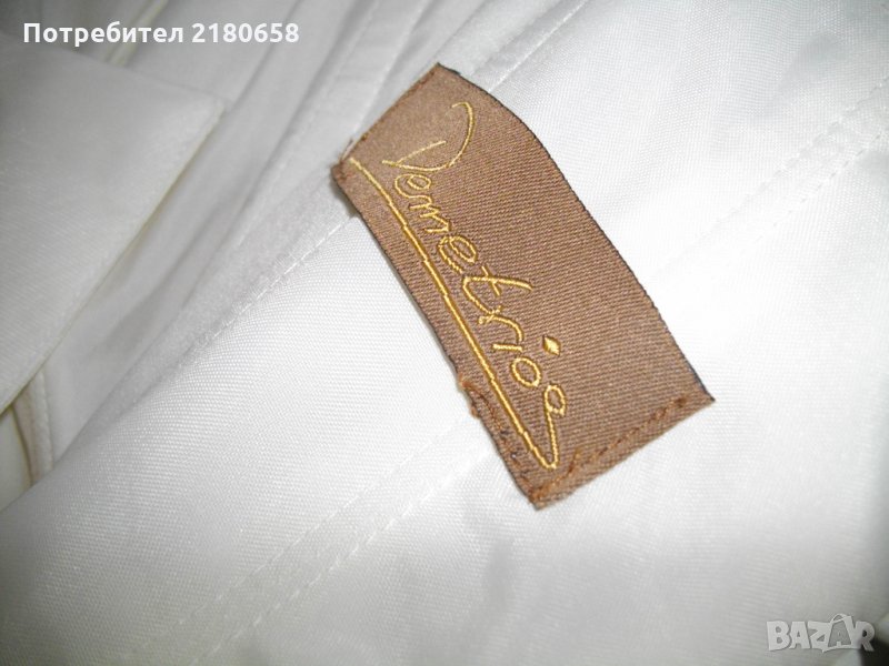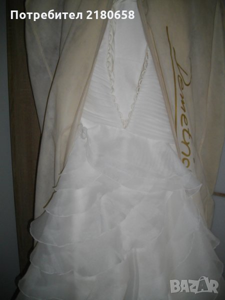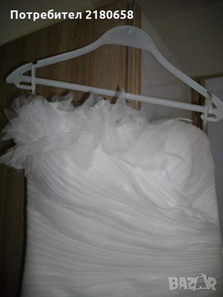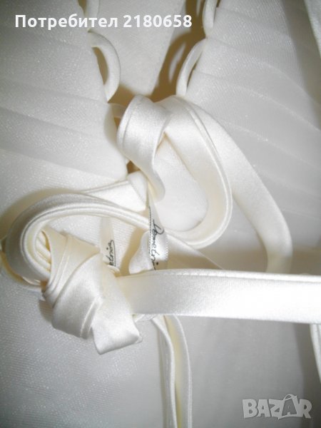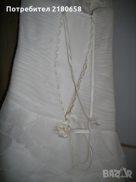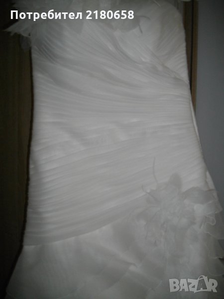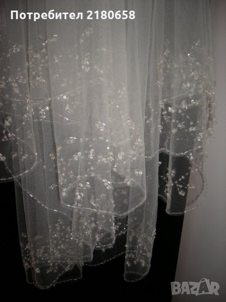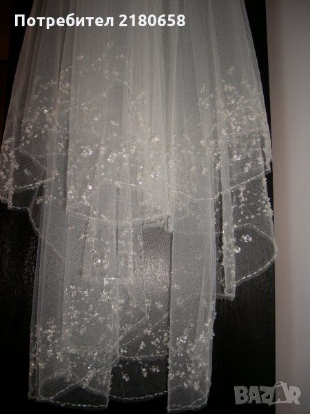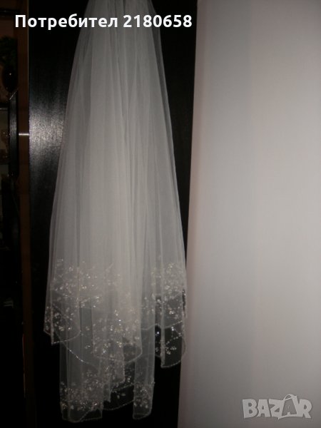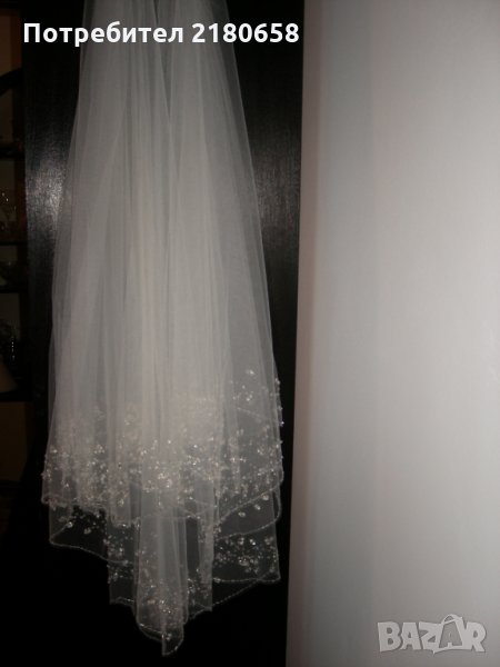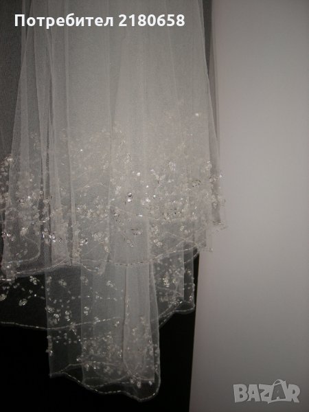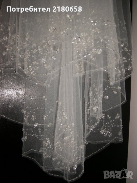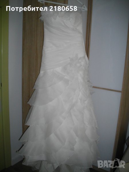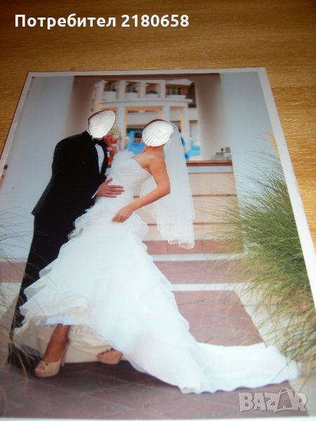 Сватбена рокля от колекцията на световно известният Американски дизайнер Demetrios.В класическо бяло,бюстие силует''Русалка''.Модел с усещане за лекота и ефирност.Следва извивките на тялото с корсет в горната част.В продължение въздушен обем на вълни в долната част с преливащ отзад водопад в красив шлейф.Роклята е супер лека.Размер S/M.Ползвана веднъж и давам след прецизно химическо почистване. Воал от висококачествен френски тюл...нежен,фин,мек на допир.Ръчно декориран с безброй мъниста преплетени в сложни орнаменти и елементи Swarovski...носещ усещане за изящество и лукс.