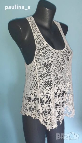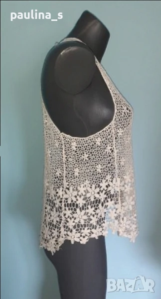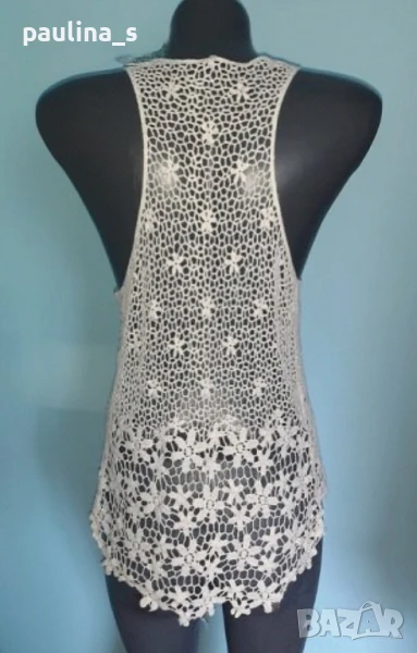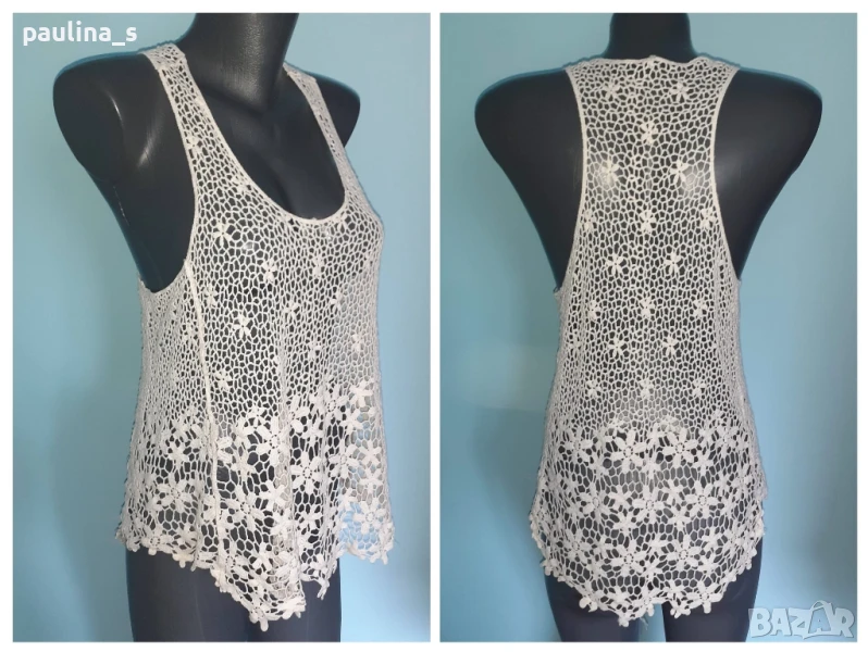 3️⃣. Колаж / L / 2XL - Дантелена туника тип потник с издължена задна част. Цената е крайна 24,99лв / 12,5 евро. Моделът е като юнашки потник отзад, долу дантелата по-сгъстена и тежка. Дрехата е много ефектна и впечатлителна. Материята е памук с примеси, плетивото дава възможност да се носи от няколко размера. Като нова, без дефекти и етикет.