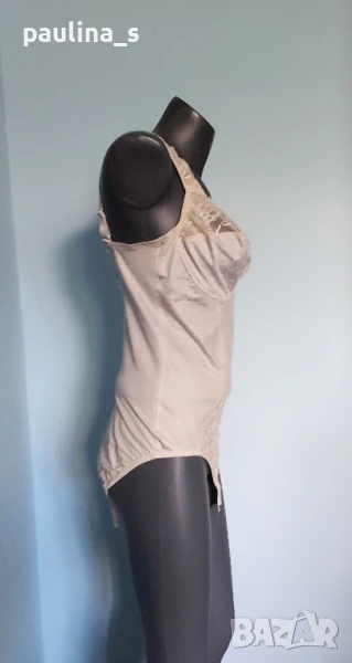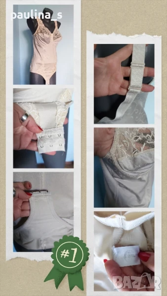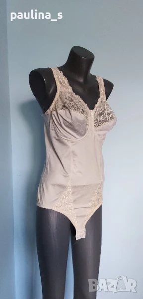 2️⃣. Колаж / L / 2XL - "Celine" 90 Е. Цената е крайна, без пазарлъци 89,99лв / 45 евро. Цената е крайна!!! Дамско луксозно боди с оформящ и стабилизиращ талията ефект. Цветът е Шампанско, материята е ликра със съдържание на памук, не запарва и е много красива дреха. Размер 90 Е, с две степени за закопчаване, чашките са меки и еластични, без банели. Като ново е, вижте снимките, без дефекти и етикет.