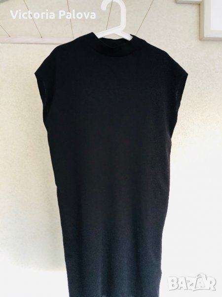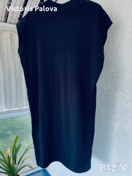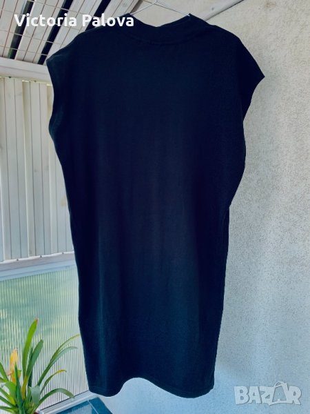 Изключително тънка,наситено черна,неизбеляваща(пере се на 40 допустими градуси),много тънък памук(бангладешки),хубава лаконична кройка кокон(стеснява се надолу).дължината е 94см,гр.обиколка-60см.