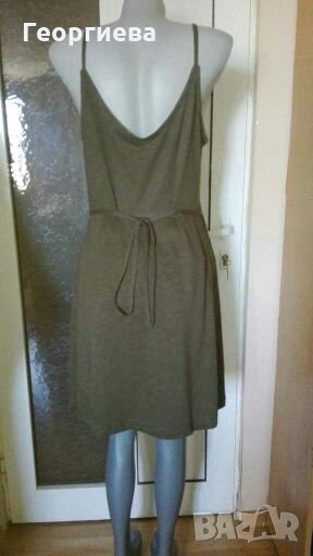 Много качествена рокля, изглеждаща като нова!Цветът е милитъри.Има еластичност, моделът е тип „прегърни ме”, но е пришита в талията.Може да се носи и с тениска, и така.
