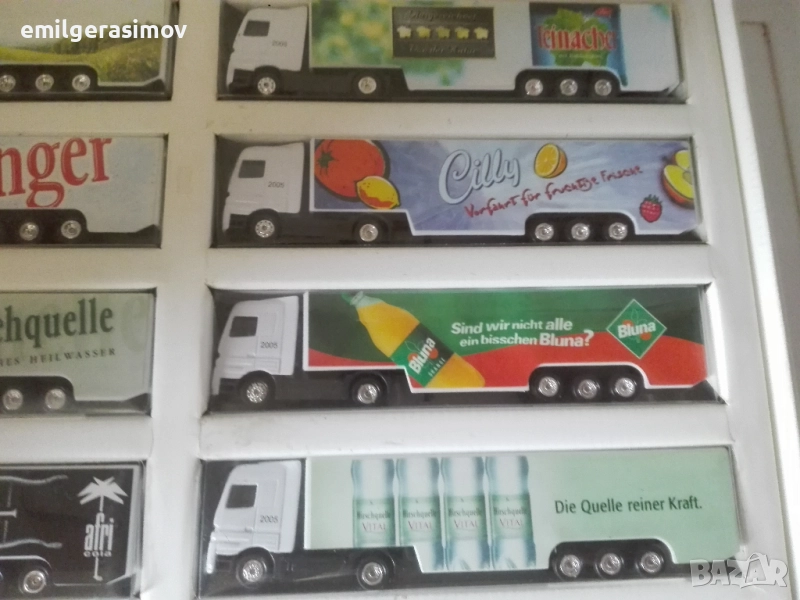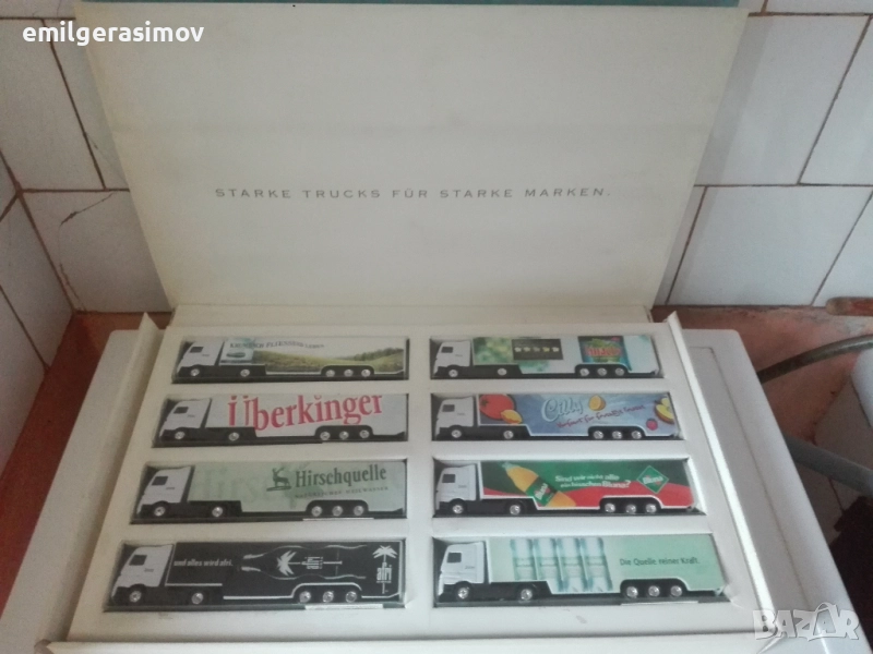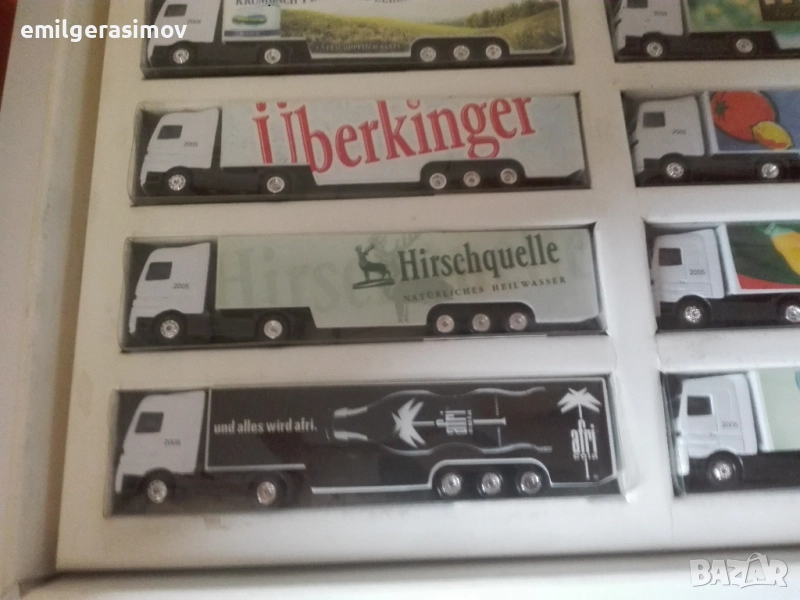 2. Осем камиончета в оригинална опаковка. Нови , не разпечатвани. Дължина около 20 см. Цена 32 евро за комплекта.