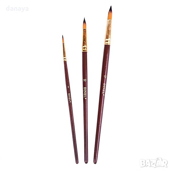 Комплект от 3 броя кръгли четки за рисуване номер 2, 10 и 12. Четките са подходящи за акварелни и темперни боички. Чудесни са за работа в клас или домашни изкуства.