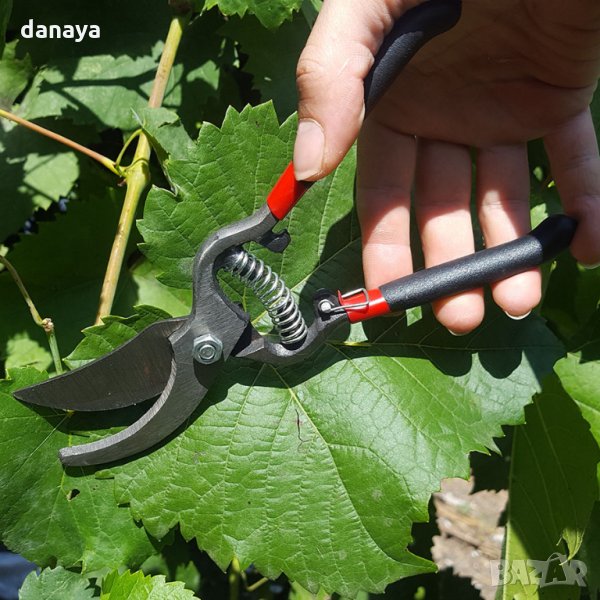 Лозарска ножица с размер 8 инча, идеална за градинска работа, подрязване на храсти, лозови клонки, бране на грозде и други плодове, изрязване на прецъфтели цветове и др. Удобни дръжки с омекотено покритие, които осигуряват комфорт по време на работа.